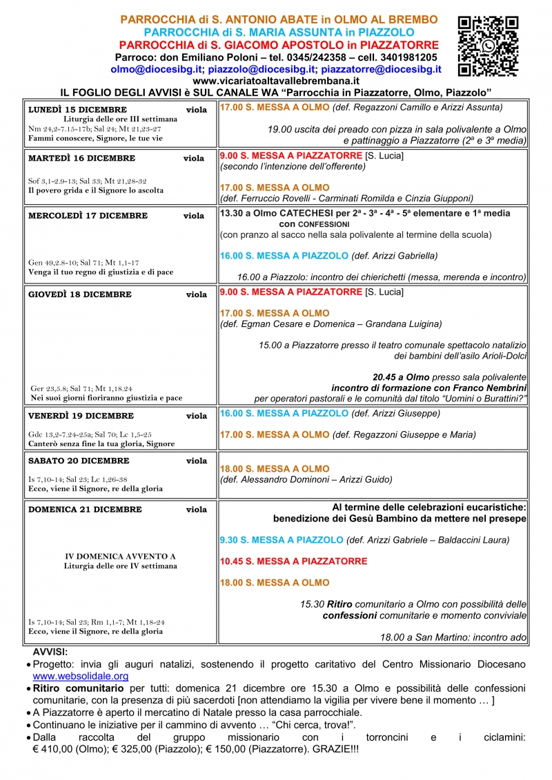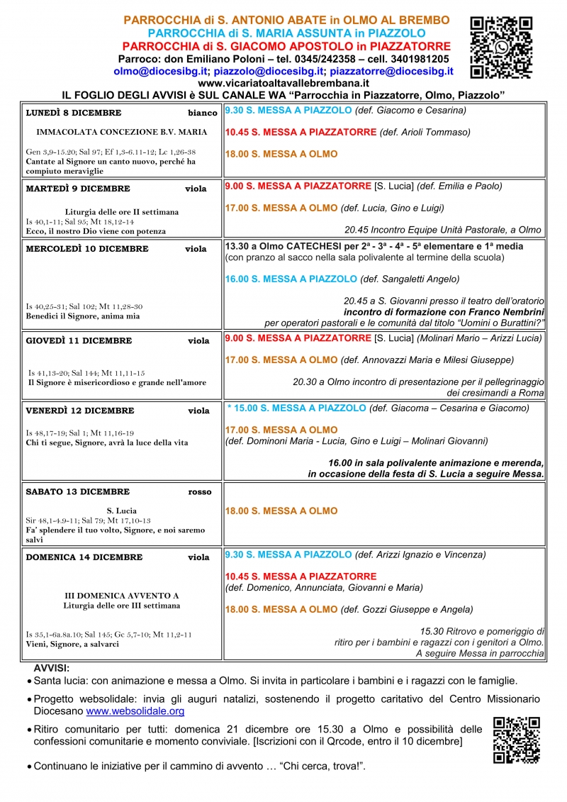 Parroco di Olmo al Brembo, Piazzatorre e Piazzolo