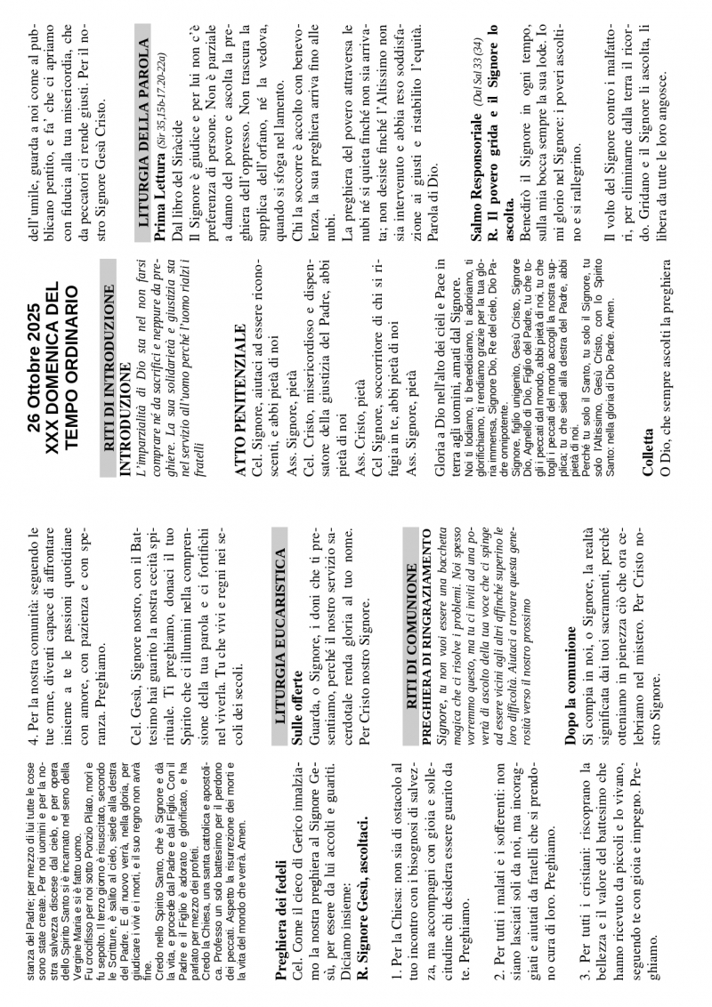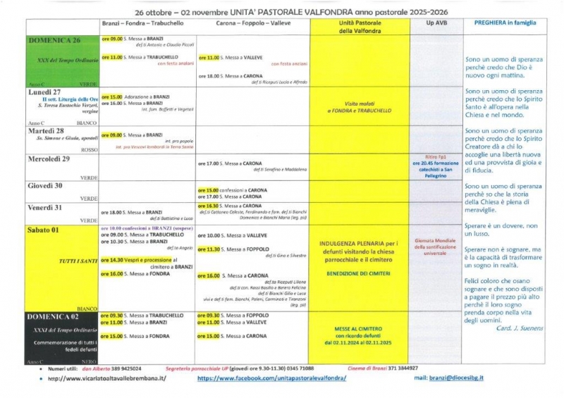 Calendario Liturgico dal 26 ottobre al 02 novembre