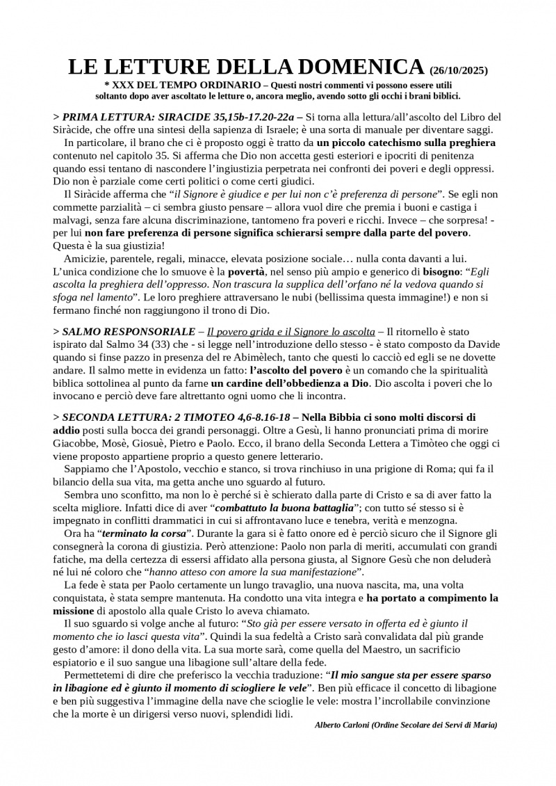 XXX domenica del Tempo Ordinario