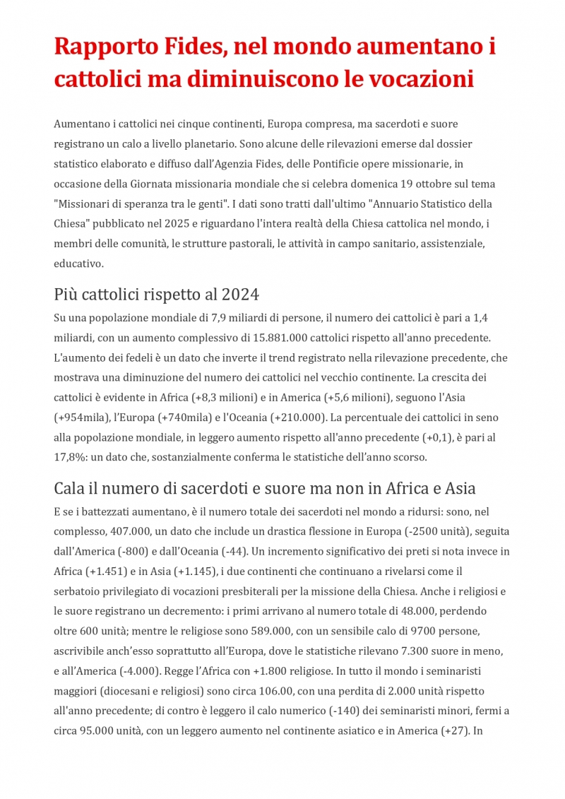 Rapporto Fides 2025