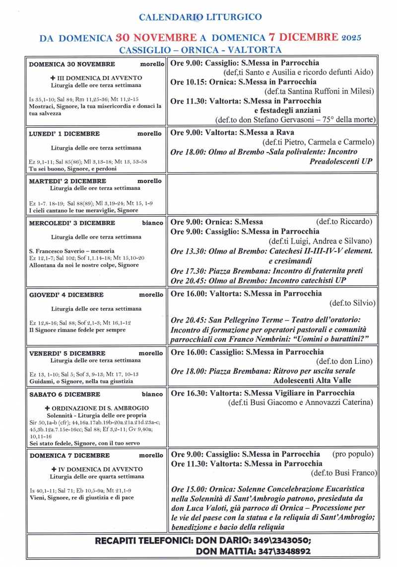 Parroco Averara, Cusio, Santa Brigida, Cassiglio, Ornica, Valtorta, Mezzoldo